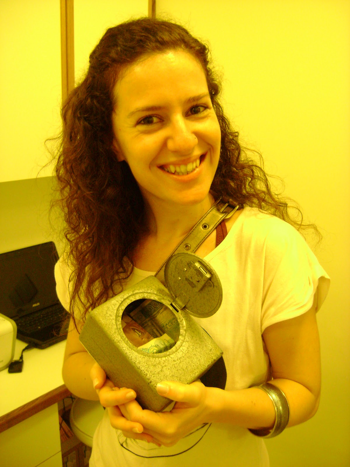 O cofrinho onde os alunos punham o dinheiro que quisessem, pois DeRose não cobrava nada pelas aulas. Mítico. Encontrei escudos!